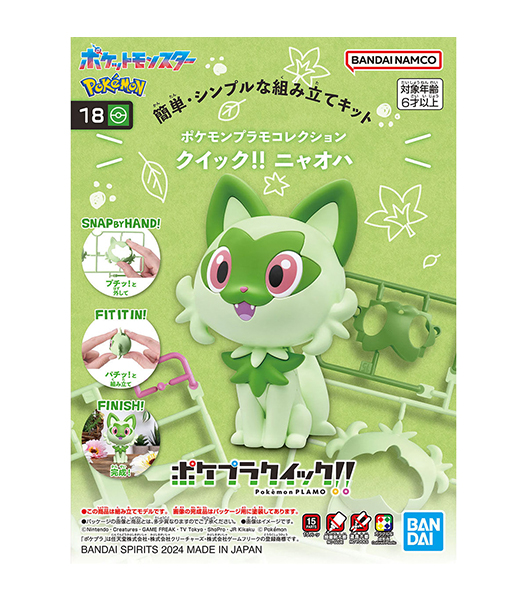 道具いらずの簡単組み立て!初めてでも簡単に組み立てられる「ポケプラクイック!!」にニャオハが仲間入り! ■全高約86mm。集めたくなる魅力的な可愛いポーズを楽しもう。 ■こだわりのパーツ分割で簡単組み立て&カラフルな仕上がりを両立。 ■ランナーを見た瞬間、出来上がりが思い浮かぶシンプル仕様。 ■道具を使わないタッチゲート方式。 【付属品】 ■シール×1
