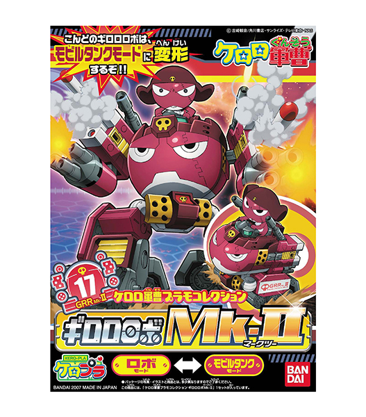 大砲やミサイルなど全身武器だらけ“ギロロロボMk-II”登場 ロボ形態からタンク形態へ変形 ロボに乗り込むギロロ伍長も手足が可動 ギロロ伍長はロボのコクピットにもなるソーサーに乗せることが可能。