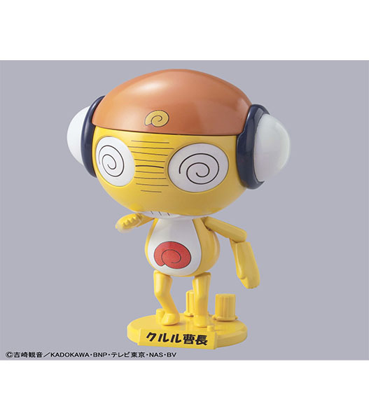 TVアニメ「ケロロ軍曹」に登場するちょっと陰湿な発明家“クルル曹長”がプラモデル化 。腕と足のパーツが複数付属、差し替えでさまざまなアクションポーズを再現可能 。目は回転ギミックで表情が変化。様々な武器が付属。対象年齢:8才以上