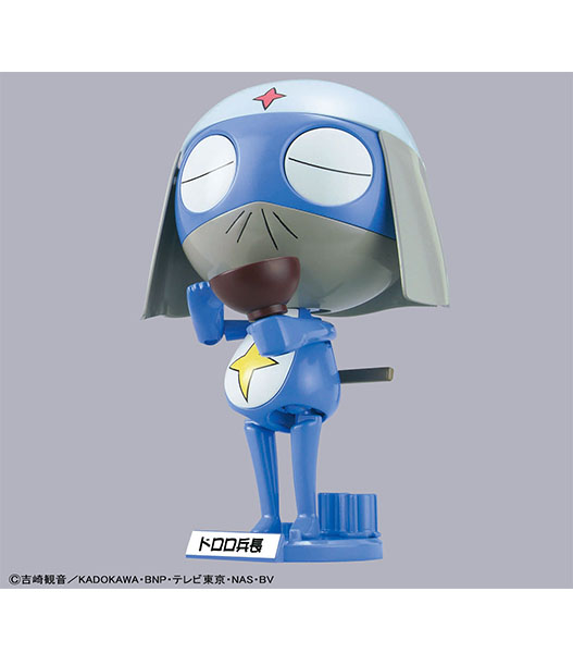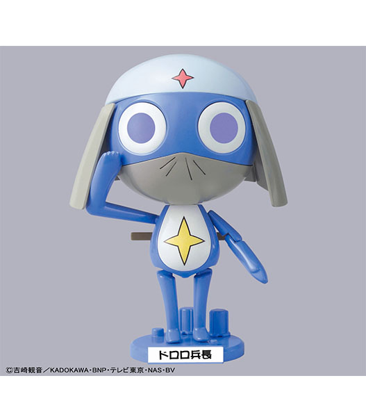 テレビアニメ「ケロロ軍曹」に登場するドロロ兵長のプラモデルです。手と足が複数付属し、差替えで様々な差替えポーズを再現可能です。目は回転式で表情が変化し劇中で携帯したオプションパーツも多数付属しています。頭はBB戦士に取り付けることが可能です。対象年齢:8才以上