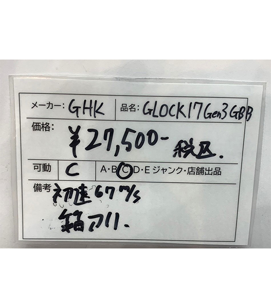 中古 ミリタリー USED GHK GLOCK 17 GEN.3 GBB マガジン+2点 Cランク
