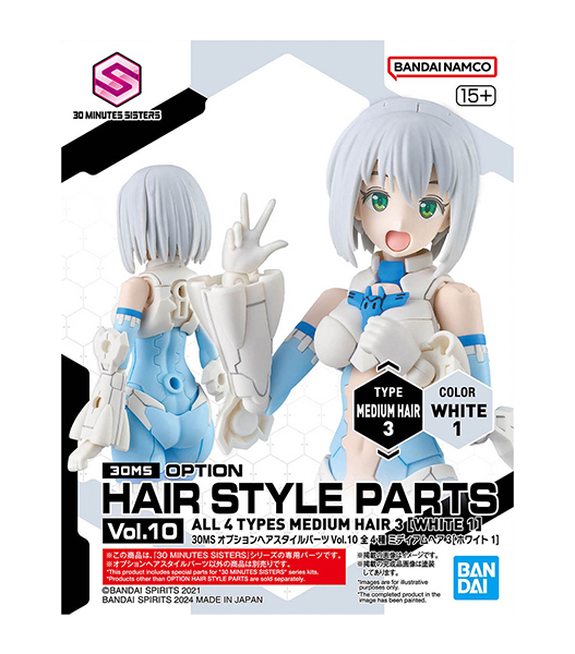 30MS素体との組み合わせで世界観が広がる!新しいオプションヘアスタイルパーツがラインアップ! ■ホワイトのミディアムヘア。 ■パーツの差し替えでヘアスタイルとヘアカラーを自分の好みに合わせてキャラメイキング。 【付属品】 ■ヘアスタイルパーツ×1