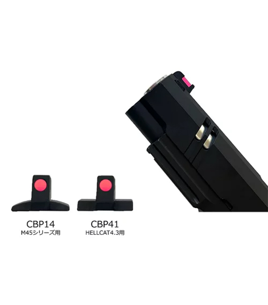 HELLCAT4.3、BlackKittyのスライド形状に合わせて、台座部分がデザインされたカスタムフロントサイト。