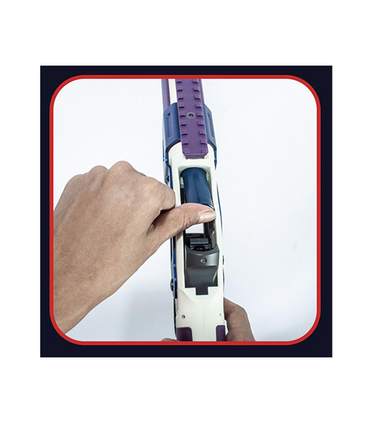スポンジ製 ソフト弾をシェルに入れてフィンガーレバーを開き、機関部上からショットシェルをマガジンチューブに装填、フィンガーレバーを閉じ、再度開閉すれば、チャンバーにショットシェルが装填され、トリガーを引くと発射されます。