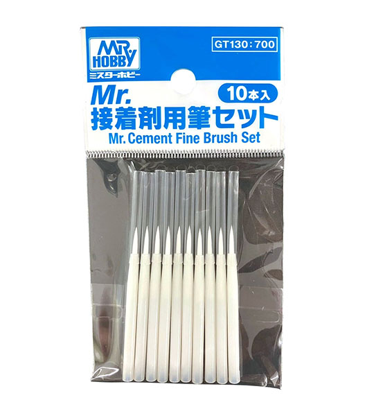 10本入 本体長さ:52mm Mr.セメントS、SPシリーズの交換用筆セットです。 丸瓶系の仕上材に最適。 使い捨て面相筆としても使用できます。