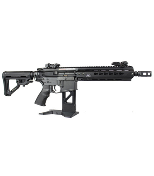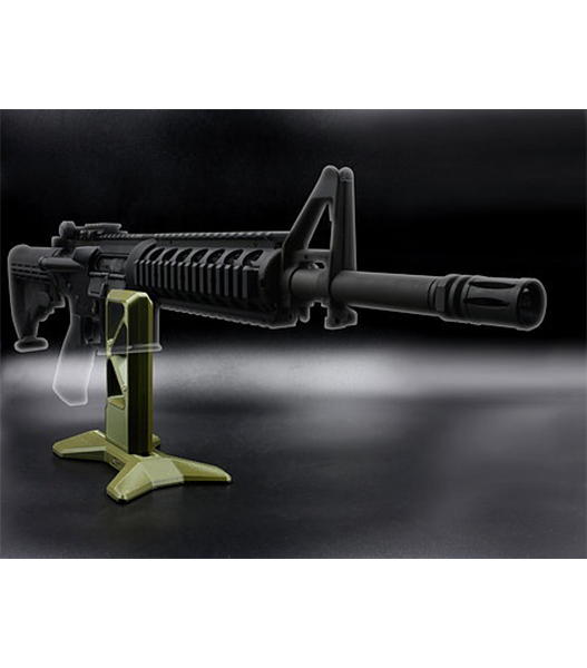各社製AR系に対応する、軽量な樹脂製ライフルスタンド。マガジンハウジングに差し込むスタイルで、簡単かつ綺麗に愛銃をディスプレイできます。