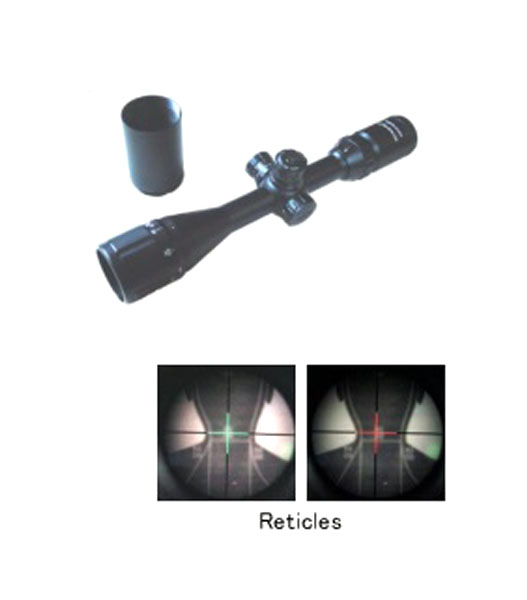 HYUGA特徴(Specification):・固定BDCタイプ、ELによりレティクル中心部が光る・スピードフォーカスタイプ・Red&Greenイルミネーションレティクル倍率(Power):x3〜9