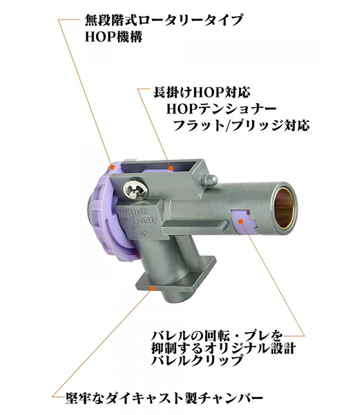 無段階式のロータリータイプHOP機構で命中精度・HOP精度の向上を目指しました。