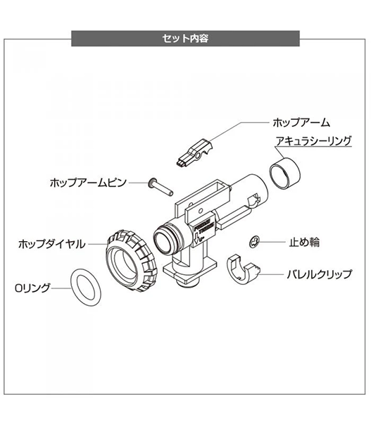 ※KRYTAC製電動ガン等、アキュラシーリングの代わりにスプリングが挿入されている場合は純正のスプリングをご使用ください。