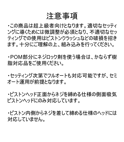 ピストン内側からネジを差し込む仕様のピストンヘッドには使用できません。