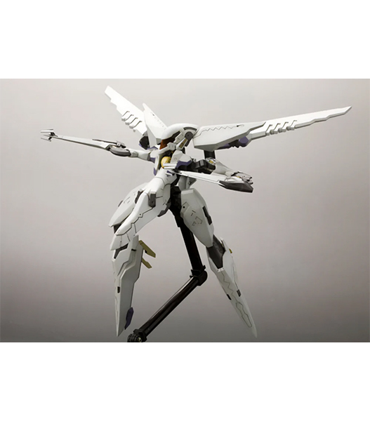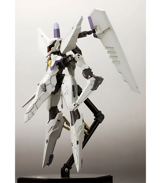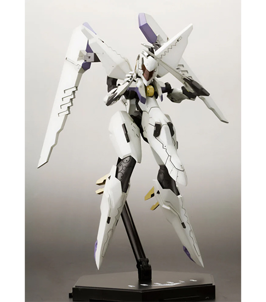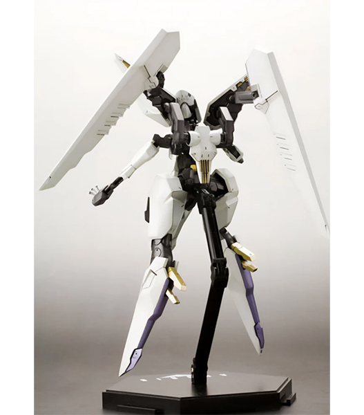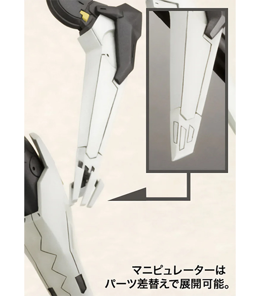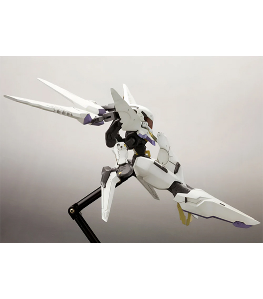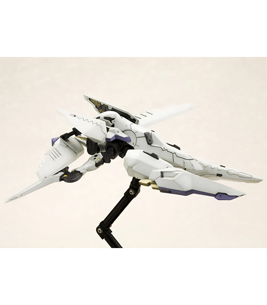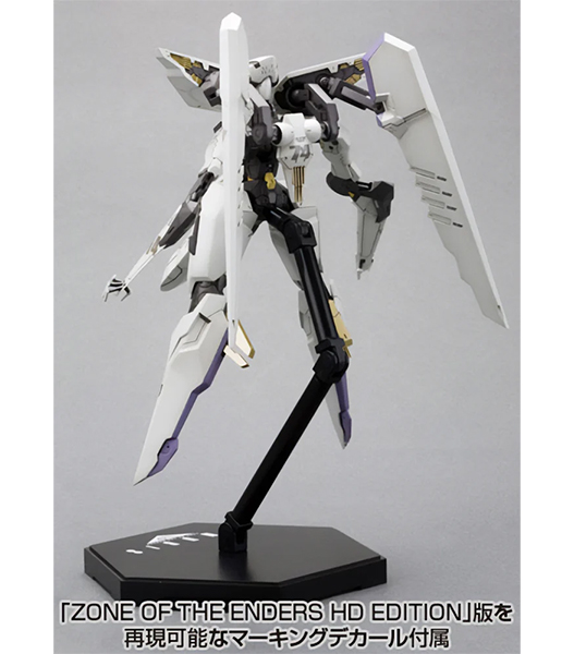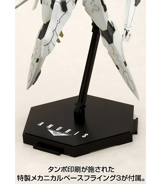 壽屋「アーマーンへ行くのか?ADA答えてくれ!」 プレイステーション2用ハイスピードロボットアクションゲーム『ANUBIS ZONE OF THE ENDERS』より、レオ・ステンバックが搭乗する伝説の名機の名を冠するビックバイパーが登場! 特徴的なロボット状態から高速移動状態への変形を、マニピュレーター差替えのみで再現しました。マニピュレーター(交換手首)は「通常手」「収納状態」の2種が付属。顔部のバイザーはクリアー成形で再現。脚部踵の「ランディングギア」パーツは可動により展開可能です。全身にわたるマーキングはデカールにて再現されます。タンポ印刷が施された特製メカニカルベース フライング3が付属します。
