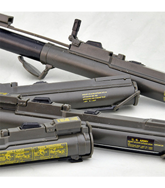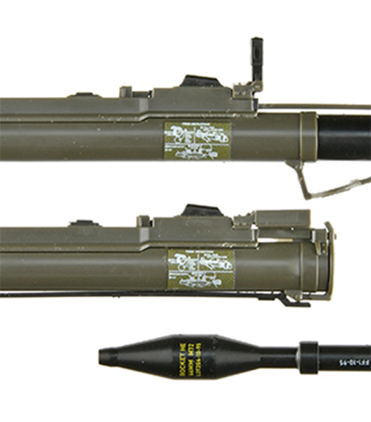 M72 LAW(Light Anti-Tank Weapon)は、1963年に米軍で採用された対戦車兵器です。ロケット弾が装填された伸縮式チューブを引き出して発射、ランチャーはそのまま廃棄します。小型・軽量で操作も容易なため、専門の射手でなくても運用が可能です。歩兵一人が2、3本を携行し、手榴弾感覚で撃ち込むという運用も見られました。戦車の装甲強化や対戦車ミサイルの高性能化により、対戦車兵器としては力不足となりましたが、軽装甲車両に対する破壊力は依然として持ち合わせています。さらに、ドローンと組み合わせて戦車の弱点である上面装甲の攻撃に用いるなど、新たな活用方法が見直されている火器です。