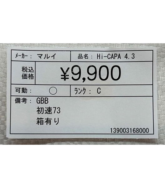 中古 ミリタリー USED マルイ GBBハンドガン Hi-CAPA ハイキャパ 4.3 BK Cランク