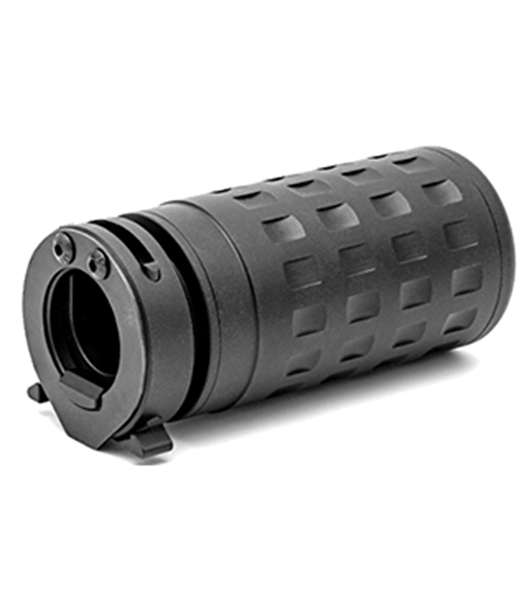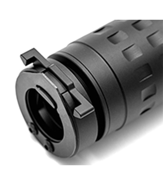 フラッシュハイダーにかぶせ、マズルから放出されるマズルフラッシュおよび騒音・衝撃波を前方に集約するシールドM4SD モック サプレッサーのデザインを継承し高い耐久性を実現