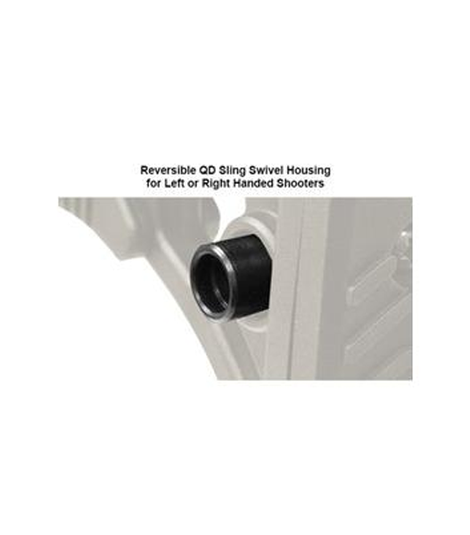 一体型両利きスリングループとQDスイベルハウジングで、射手の利き手関係なく取り回しやすさを実現。