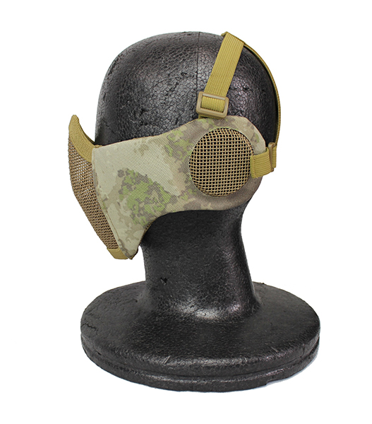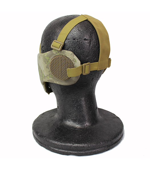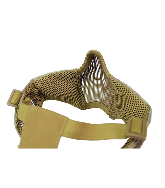 WoSporT耳の部分まで広くカバーされたハーフメッシュマスクです。 サイドはナイロン生地となっているため銃器への頬付けが可能となっています。 口元、耳元にはスチールメッシュが配置されているので、周囲の音の認識を確保しつつ、高い通気性と防弾性を実現。