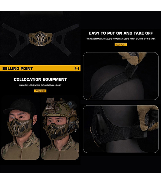 WoSporTSF映画に出てくる装甲兵士のようなデザインのハーフメッシュマスクです。