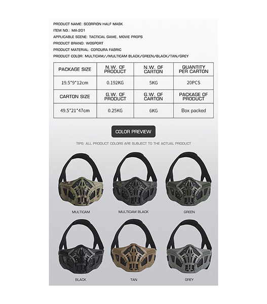 WoSporT Scorpion ハーフ スチールメッシュ マスク DarkEarth