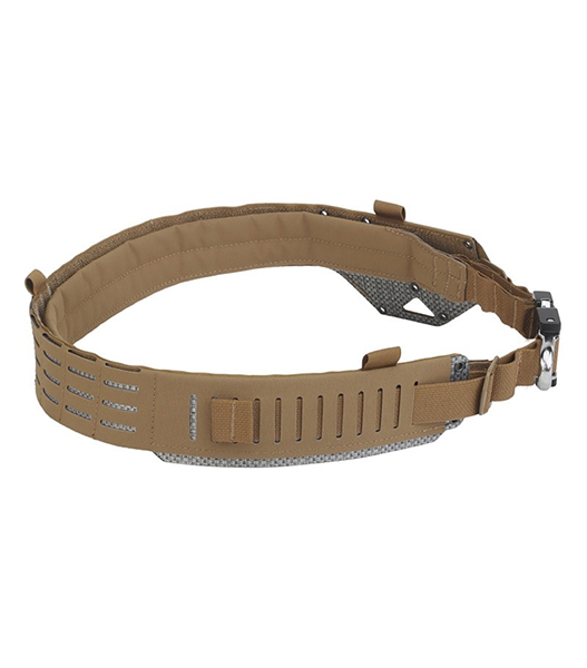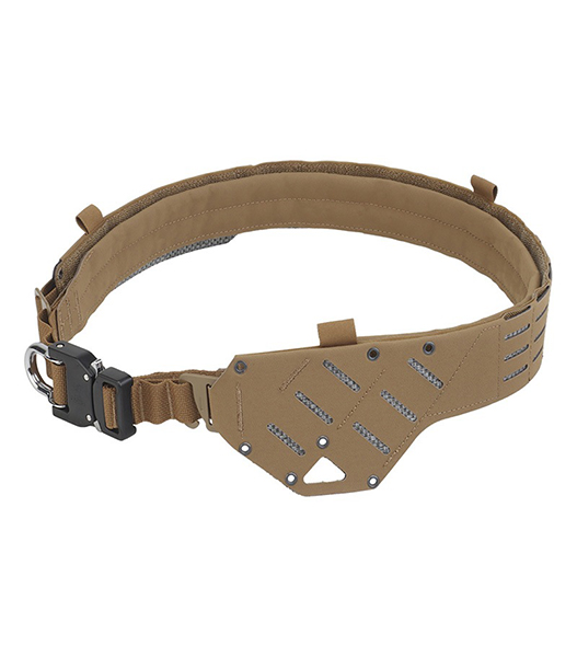 特徴はアウターベルトにあり、ベルト左側のモール配置はピストルマグポーチなどを角度をつけて取り付けることができ、真上に引き抜くよりも素早くかつ容易にマガジンを引き抜くことができます。