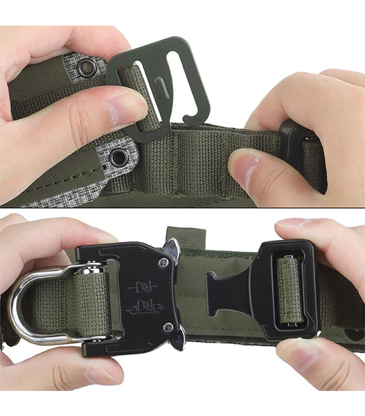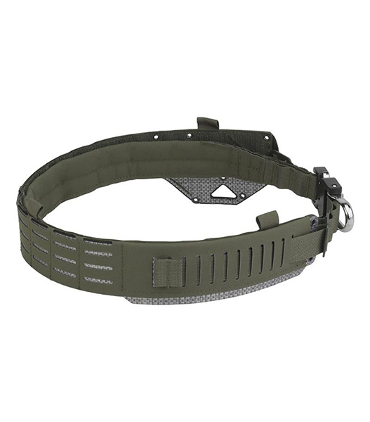 特徴はアウターベルトにあり、ベルト左側のモール配置はピストルマグポーチなどを角度をつけて取り付けることができ、真上に引き抜くよりも素早くかつ容易にマガジンを引き抜くことができます。