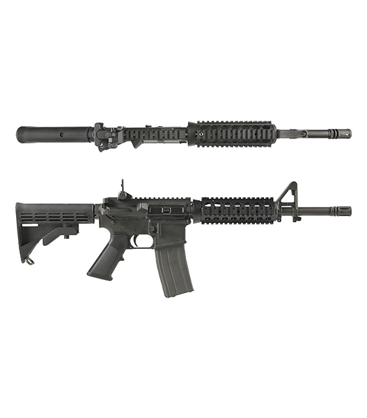 M4 RAS(Rail Adapter System)は、ナイツ・アーマメント社(KAC)が開発したM4カービン用のアクセサリー装着システムです。このシステムは、ハンドガード部分にピカティニー・レールを備え、各種アクセサリーの取り付けを容易にします。M4 RASは、アメリカ軍の特殊部隊向けに開発されたSOPMODキットの一部として採用され、光学照準器、レーザーサイト、フラッシュライト、フォアグリップなどの装着を可能にし、任務に応じた柔軟なカスタマイズを実現します。これにより、M4カービンの汎用性と戦術的適応性が大幅に向上しました。M4 RASは、現在も多くの軍や法執行機関で使用されており、その信頼性と拡張性から高い評価を受けています。