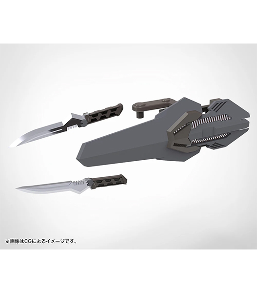デザインは新進気鋭のsera氏。新ロボットシリーズ「フォルムアームズ」第一弾のレイルヴァースも同氏のデザインのため、同月発売のストライドライフル・ストライドSMGとデザインを揃えて装備する事ができます!
