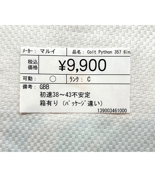 中古 ミリタリー USED マルイ コルトパイソン 357 6インチ ガスリボルバーSV Cランク