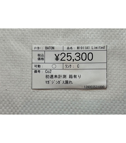中古 ミリタリー USED BATON M1911A1 Limited Co2 ガス漏れアリ