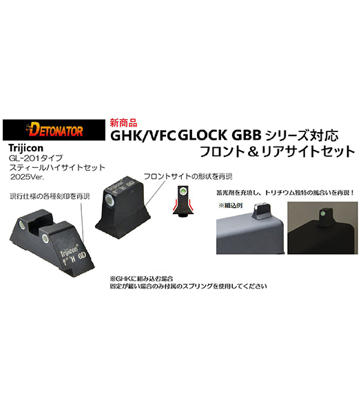 DETONATOR VFC/GHK Glock用 Trijicon GL-201タイプ スティールサイトセット(2025Ver)