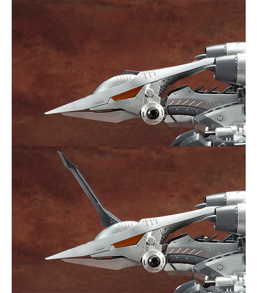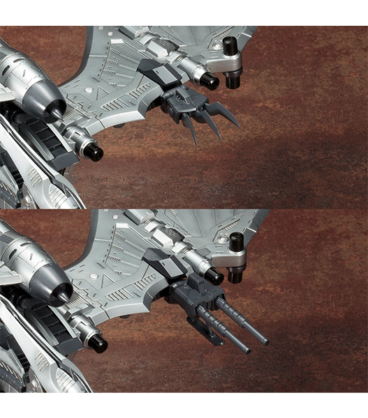 ・「2連装パルスレーザーガン」と「アイアンクロー」の交換式でお好みの形態で完成・組み換えが可能です。