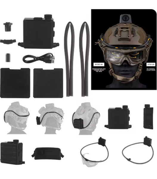 ゴーグルの曇り止めです。空気を送ることにより、レンズの曇りを抑えます。 充電:TYPE-C