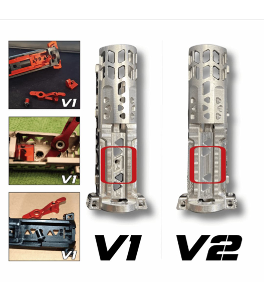 セレクターレバー内蔵式軽量ボルトセットです。V2アドバンスドボルトは、ねじ穴を排除することで溝の設計を最適化し、構造的な強度と一体性を向上。