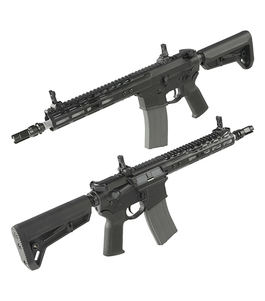 このモデルは、5.56mm NATO弾と.300 AAC Blackout弾の両方に対応し、状況に応じた弾薬の選択が可能。Gen.3アッパーレシーバーとNSR-9インチM-LOKハンドガードを採用し、軽量化と拡張性を向上させています。また、操作性を考慮し、フルアンビ仕様のコントロールや高品質なパーツを装備。