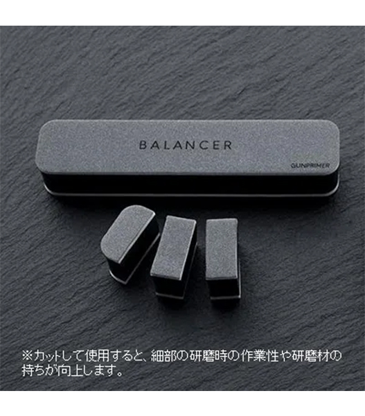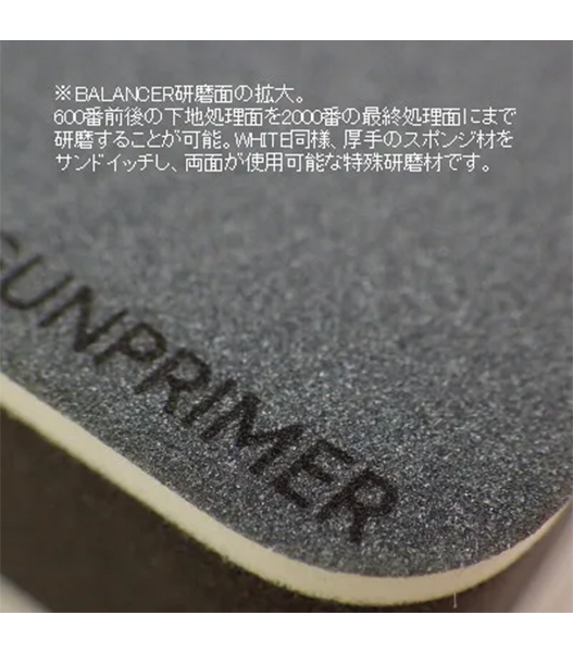 また、グレイでの研磨後にGUNPRIMER - BALANCER WHITE(バランサー ホワイト)3個セットの両面で研磨することにより、艶のあるグロス状態にまで研磨が可能です。水研ぎ可能。