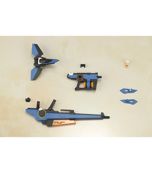 ・大腿部のフィン状パーツは3mm径軸付きのものが付属し、既存M.S.Gシリーズ、フレームアームズシリーズのパーツを取り付けることが可能。
