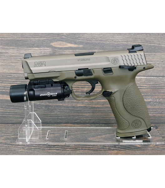 小型〜大型の銃までしっかりフィットし、ライト付きでも安定して飾れます。