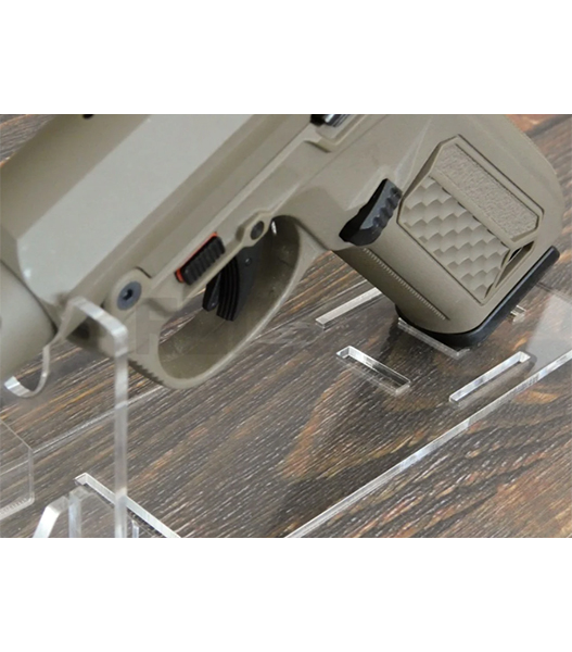 グリップやマガジンを支える溝付き台座で横滑りも防止。