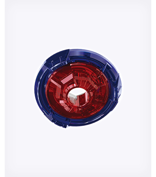Xダッシュ時にビットの回転に連動して、ブレードがいなし防御性能の高い円形6枚刃から攻撃性能の高い3枚刃へ変形するベイブレード。