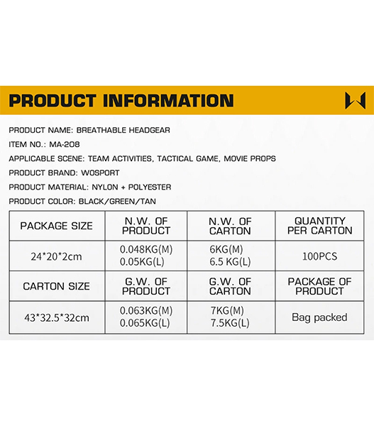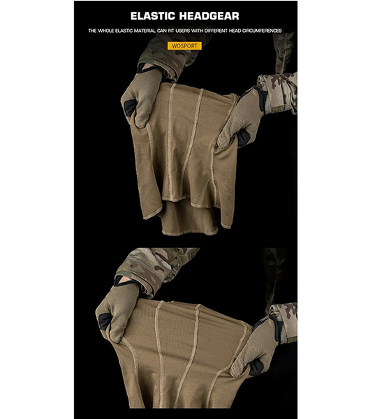 WoSporTタクティカル環境での長時間装着を想定して設計された通気性に優れた多機能ヘッドギアです。軽量で速乾性のあるメッシュ素材を採用し、ヘルメットやヘッドセットと併用しても蒸れにくく快適な着用感を保ちます。