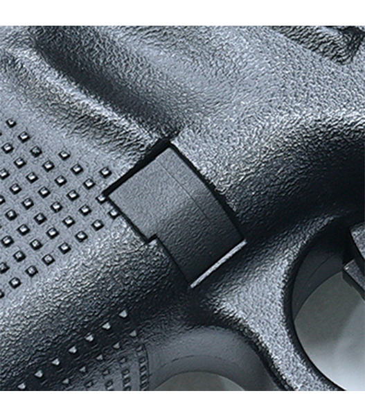 純正パーツはABS樹脂と亜鉛合金のハイブリッド構造で耐久性を持たせていますが、このパーツはナイロン系素材一体成型でリアルさを優先させています。