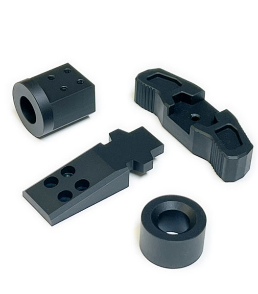 サンドブラスト処理にて表面を整えたのちにブラックアルマイト仕上げ。