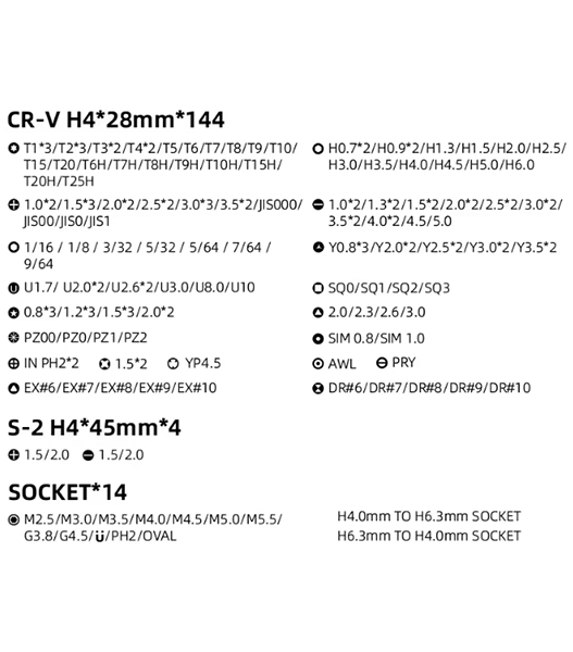 幅広いビットバリエーションで、多種多様なネジに対応。家庭用から業務用まで、さまざまな修理ニーズをサポートします。