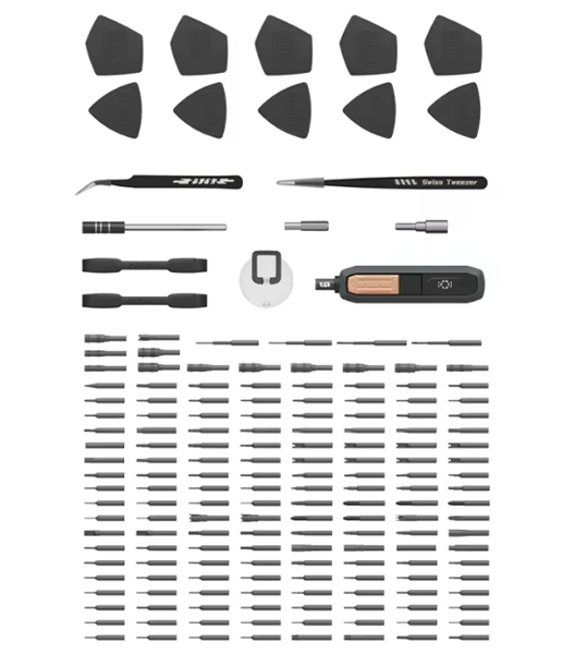 180種類のツールをコンパクトに収納。スマートフォン、ノートPC、カメラ、時計、ゲーム機、メガネなど、さまざまな電子機器のメンテナンスや修理に対応します。
