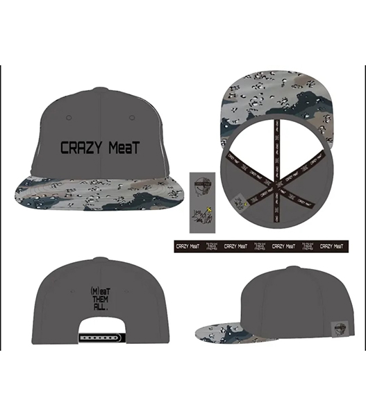 長らくお待たせしました、CRAZY MeaTのフラットバイザーキャップ。 内側のパイピングまでロゴ入れされ、サイズ感から何から何までCRAZY MeaT完全オリジナルで作りあげた渾身のアイテム☆