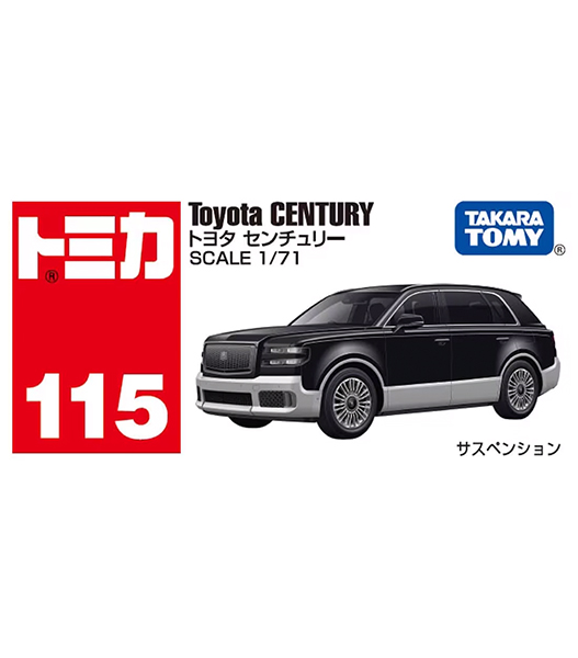 「トヨタ センチュリー」が、トミカになって登場です。 <アクション> サスペンション 車体のメインカラー:ブラック系(お子様にお伝えする目安の色)