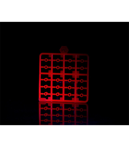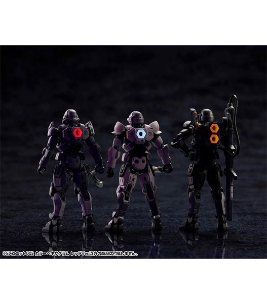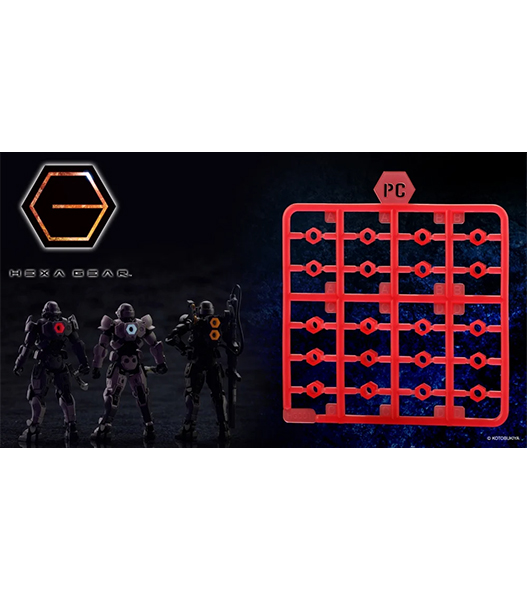 ■ヘキサギア世界の二大勢力の一方、MSGヴァリアントフォースをイメージしたレッドで成型されたヘキサグラムは、半クリアー成型とする事でガンメタルのフレームをはじめとした暗色の部品に装填してもしっかりとした発色を保ちます。