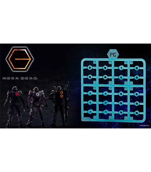 中央部に3mmのジョイント穴が有る為、ヘキサギアだけでなくコトブキヤオリジナルシリーズの装飾にもご活用いただけます。