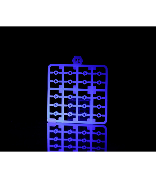 ■成型時にカラーに合わせた蛍光顔料を含有させてあり、UVライトを当てる事で暗所で発光させる事が可能です。