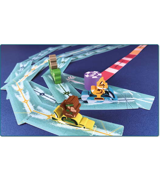 レーサーたちが進んだ後には美しい波しぶきのカードが机にのこされて、レースが進むと古い波しぶきのカードから回収されていきます。ゲームの流れの中で波しぶきが起こり消えていく様子が見事に表現されており、水上レースならではの没入感が楽しめます。