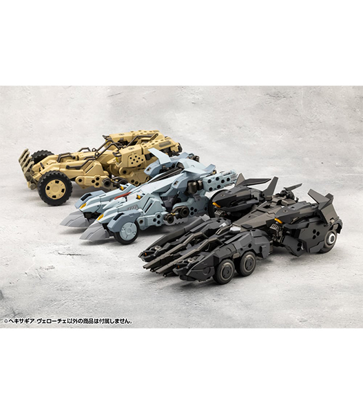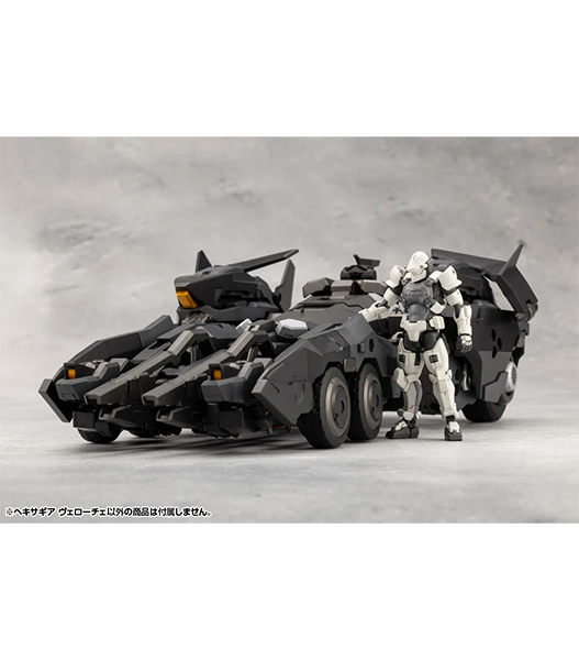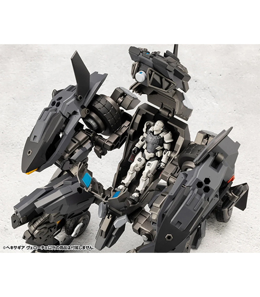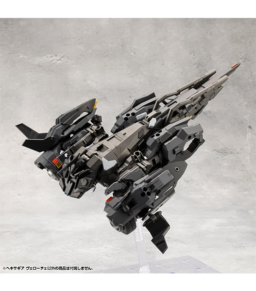 新デザイナーLAS91214氏によるヘキサギア第一弾は人型から車両型、さらに飛行形態へと三段変形が可能な迎撃用ヘキサギア!外装を取り外す事でスマートなシルエットのカスタムベース機体としても有能です。シリーズの特性である組み換えに加えて、ソリッドかつスタイリッシュなデザインにアクション性能までも兼ね備えたヴェローチェを見逃すな!